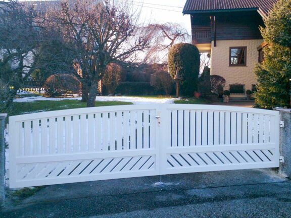 Ein Zweiflügeltor verbindet klassische Optik mit moderner Funktion – ideal für alle, die sich einen stilvollen Zugang zu Ihrem Zuhause wünschen. Die beiden Torflügel lassen sich in Breite und Öffnungsrichtung anpassen und fügen sich harmonisch ins Gesamtbild Ihrer Einfahrt ein.