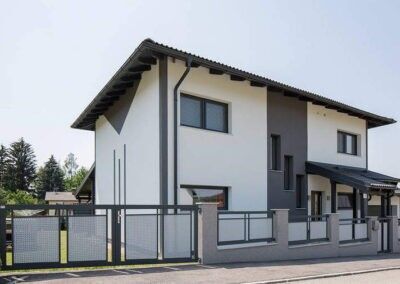 Passend zu jedem Baustil ist die Verbindung aus TOSKANA und LOOS. Das Dekor gibt es in unzähligen Varianten. Der Zaun ist eingefasst und verschraubt. Im gleichen Design sind Gehtüren, Zweiflügeltore und Schiebetore möglich.